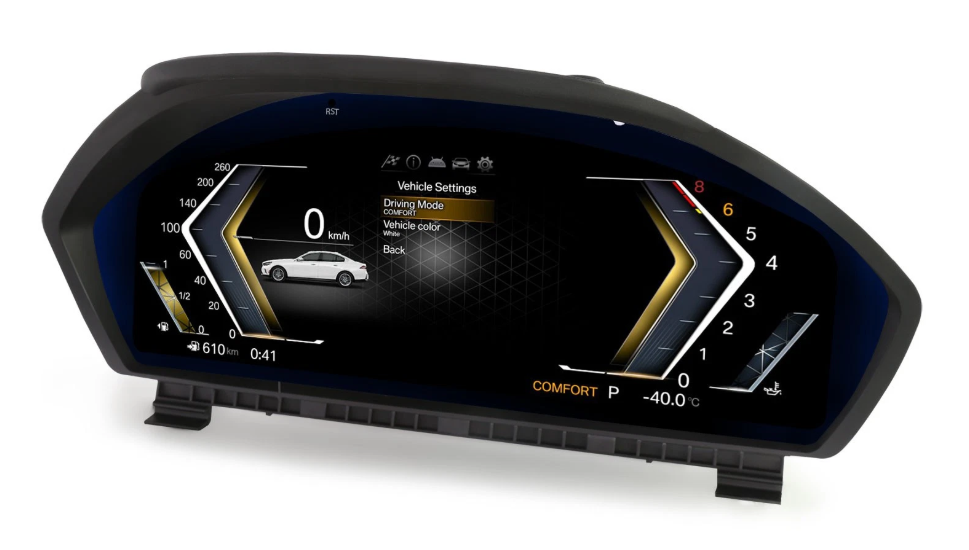 Ulepsz swoje BMW, wyposażając je w najnowocześniejszy, w pełni cyfrowy zestaw wskaźników, zaprojektowany z myślą o zapewnieniu nowoczesnych, zaawansowanych technologicznie wrażeń z jazdy. Ten zaawansowany wyświetlacz cyfrowy zastępuje tradycyjne wskaźniki analogowe, oferując elegancki, konfigurowalny interfejs z danymi pojazdu w czasie rzeczywistym i dynamicznymi motywami wizualnymi.